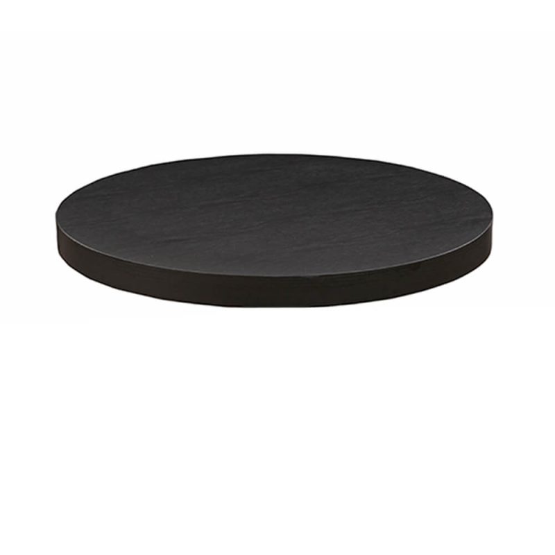 Bordpladen er udstyret med en sort melamin-overflade, der tilføjer et moderne og sofistikeret touch. Melamin er kendt for sin holdbarhed og modstandsdygtighed over for ridser og pletter, hvilket gør det til et ideelt valg for caféer og restauranter, hvor møblerne udsættes for intensiv daglig brug. Den sorte bordplade skaber en elegant kontrast til det sorte stel, hvilket giver bordet et ensartet og stilfuldt udseende, der passer til mange forskellige indretningsstile.